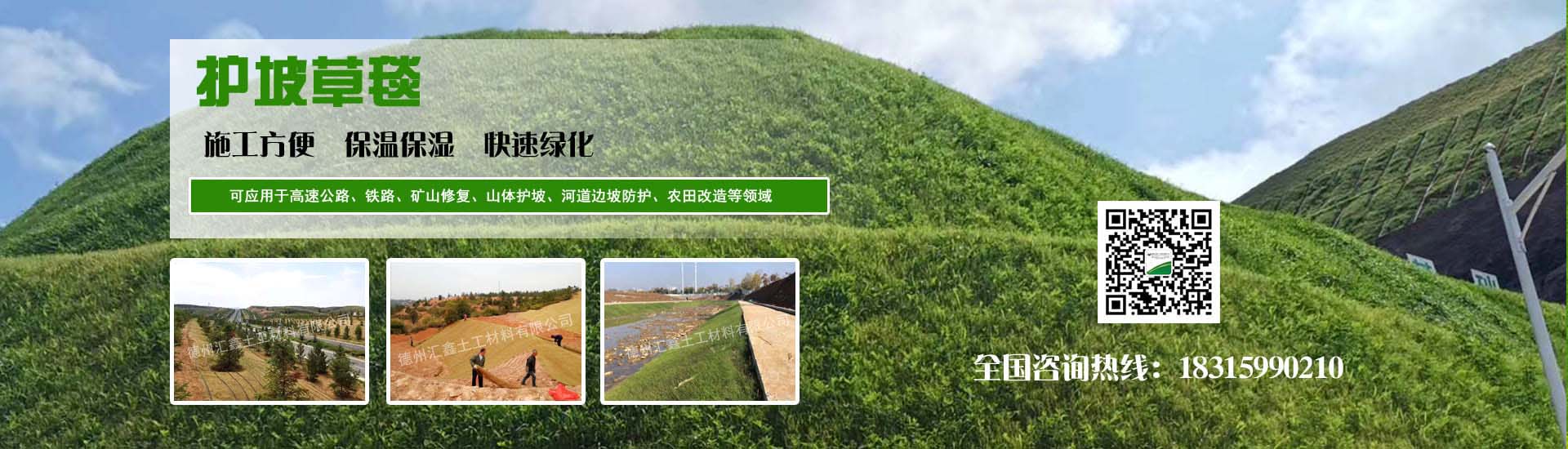 德州匯鑫土工材料有限公司是一家生態護坡產品、技術服務及施工為一體的綜合性企業。公司主要生產銷售植物纖維毯、水保植生毯、椰絲毯、抗沖生物毯、生態毯、秸稈纖維毯、麻椰固土毯、塑筋水保抗沖椰墊、生態袋、植生袋等各種護坡材料,產品廣泛應用于:高速公路邊坡綠化、山體邊坡綠化護坡、河道邊坡、人工湖邊坡防護及其他生態邊坡治理等工程。經廣大工程單位使用證明,產品質優價廉,施工方便,售后服務好,得到廣大客戶的一致好評。 "為客戶提供優質產品及服務"的宗旨, 熱誠希望攜手各界朋友,共鑄造彼此輝煌。...